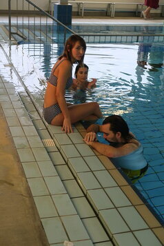Une jeune femme se rend à la piscine avec son ami, mais un poids invisible l'accompagne.
